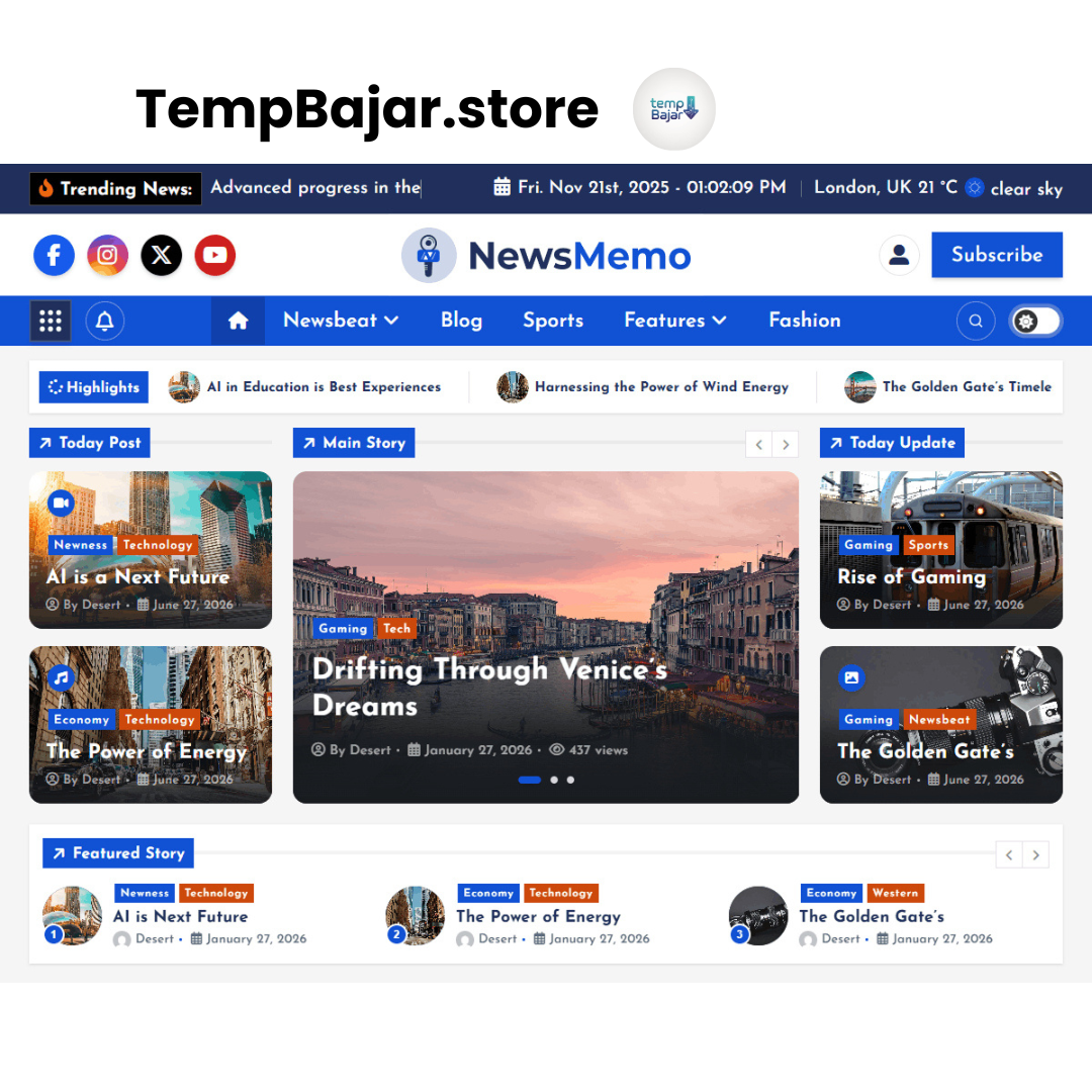 NewsMemo WordPress Theme is a powerful and elegant theme specially crafted for news websites, online magazines, bloggers, journalists, and content creators. It offers a clean, professional design combined with high performance and flexibility, making it perfect for delivering news, articles, and stories in an engaging way.